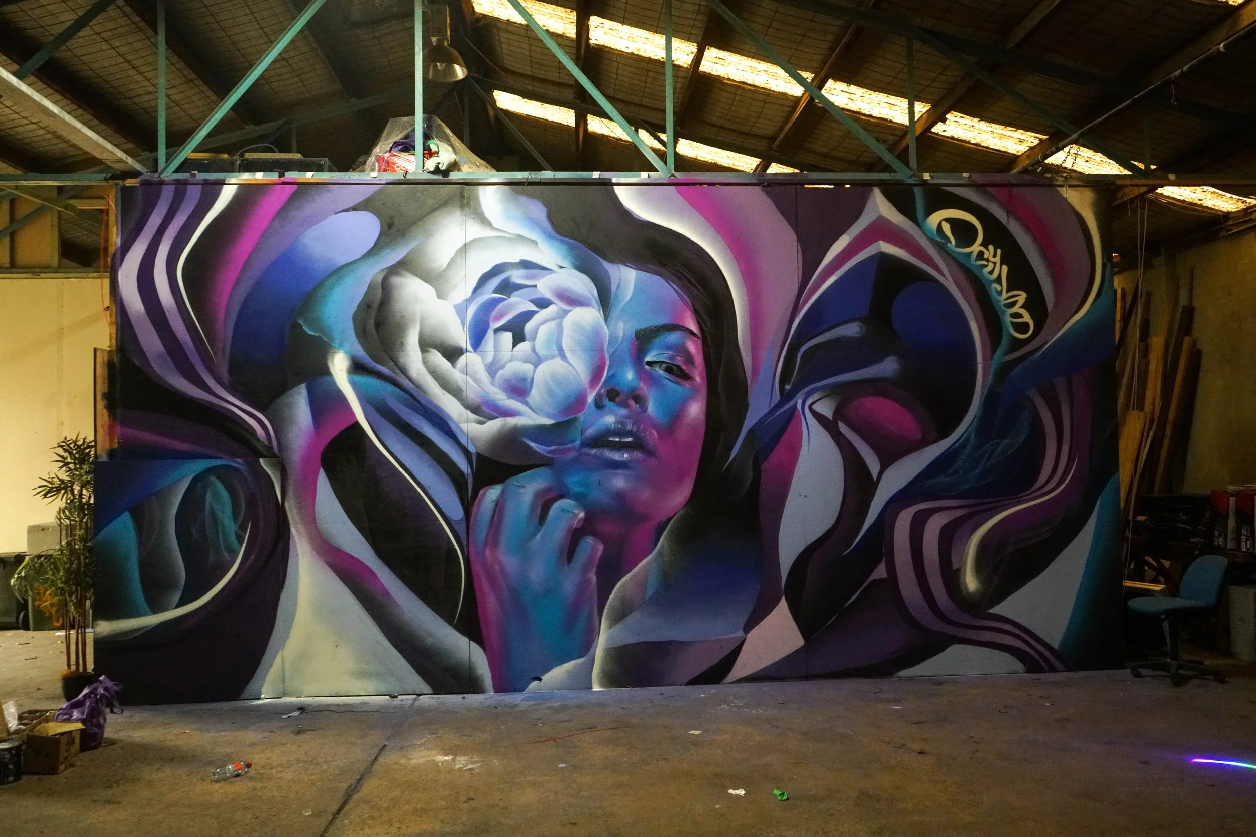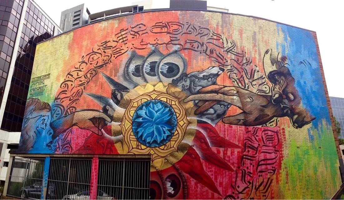 Daniel is an artist based in the Blue Mountains and Sydney, with over a decade of experience specialising in large-scale murals and conceptual designs. Using a versatile range of dynamic media including aerosol, brush, and acrylics, Daniel infuses his work with captivating and unique visual textures.